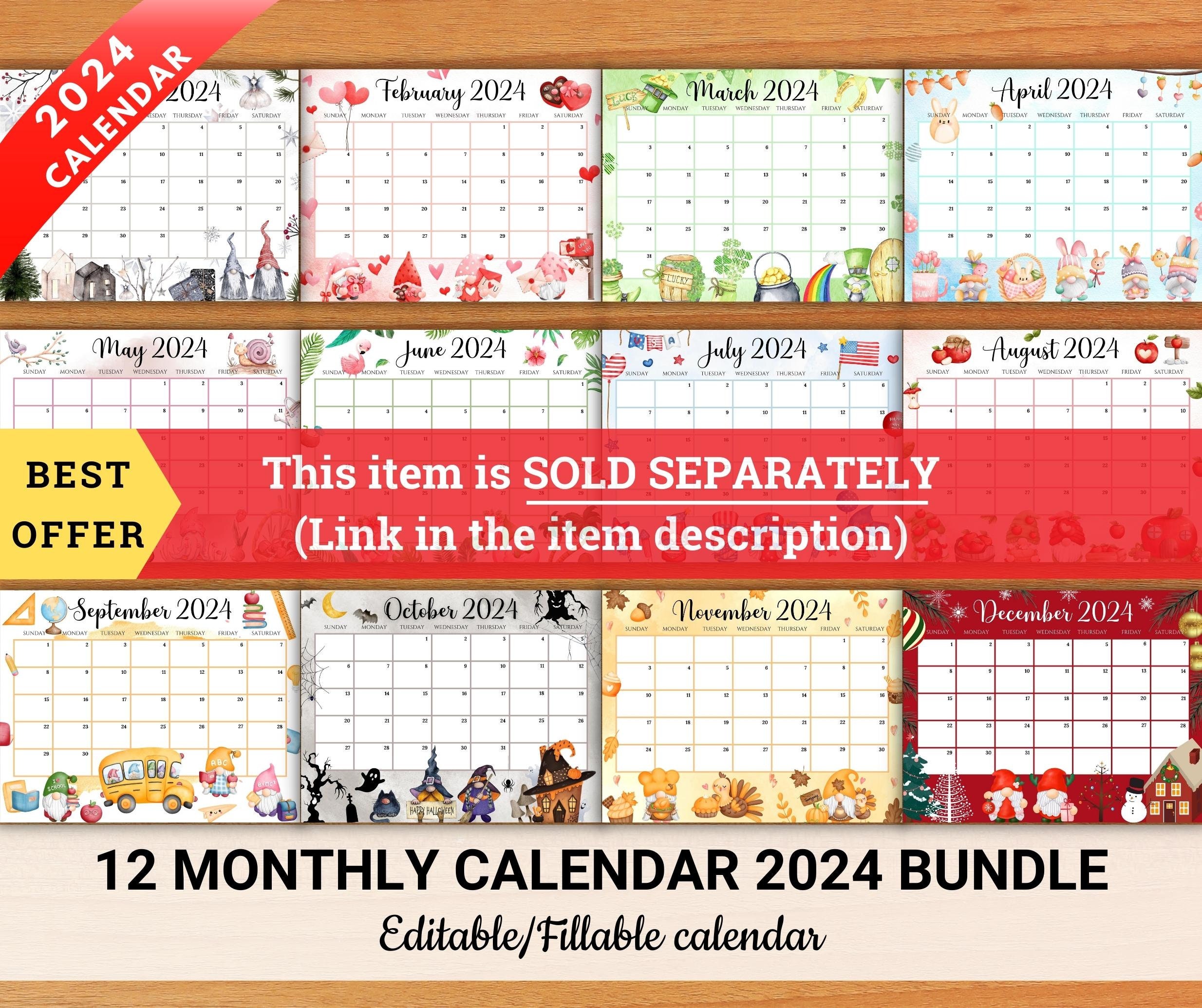 EDITABLE January 2024 Calendar New Year Celebration Planner Etsy