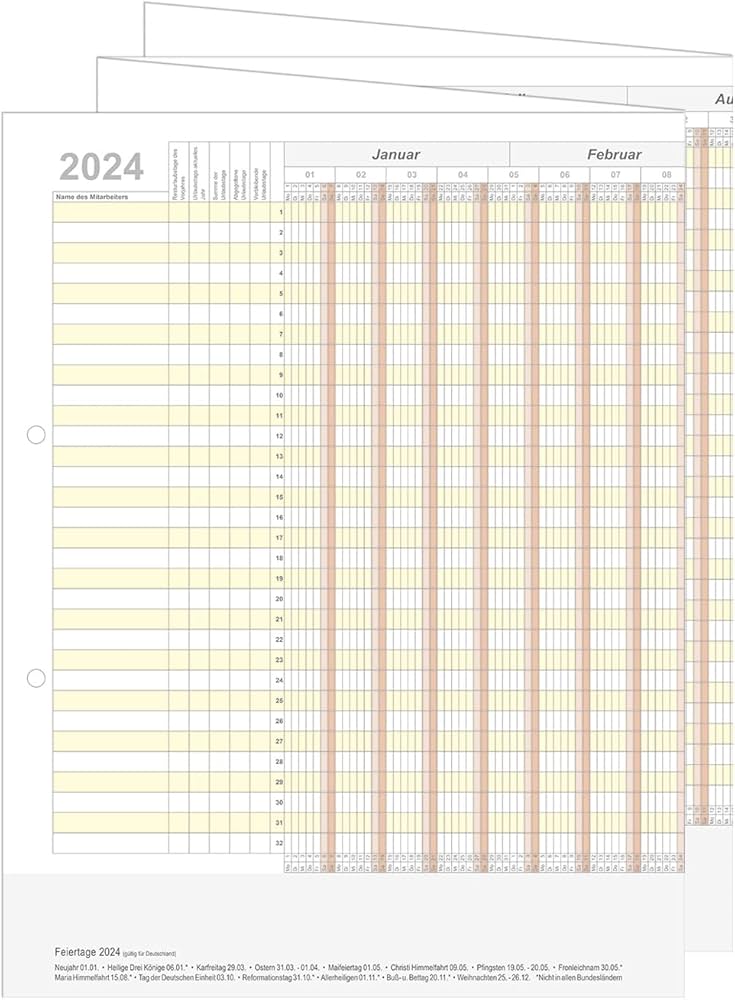 Personal Planner Holyplan 2024 Calendar for 32 Employees